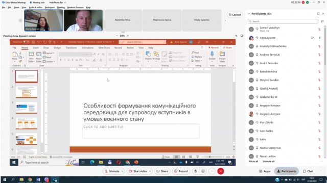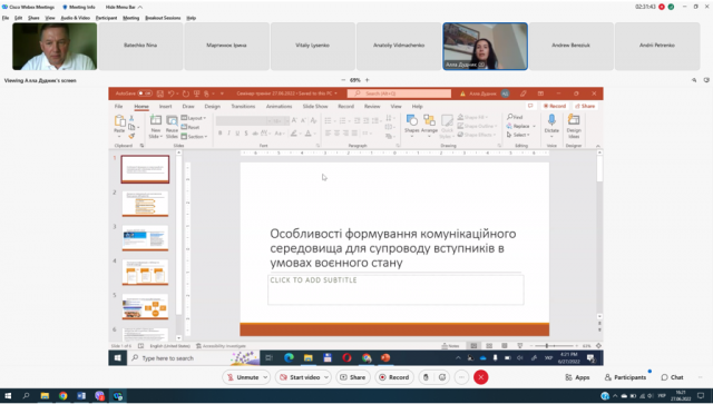 Алла Дудник зосередилася на особливостях формування комунікаційного середовища для супроводу вступників в умовах воєнного стану.