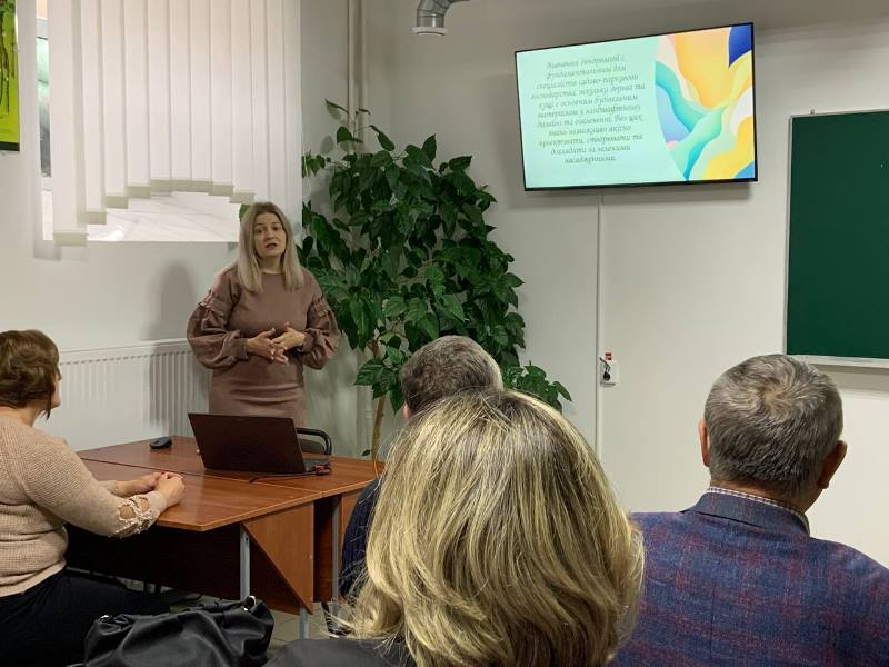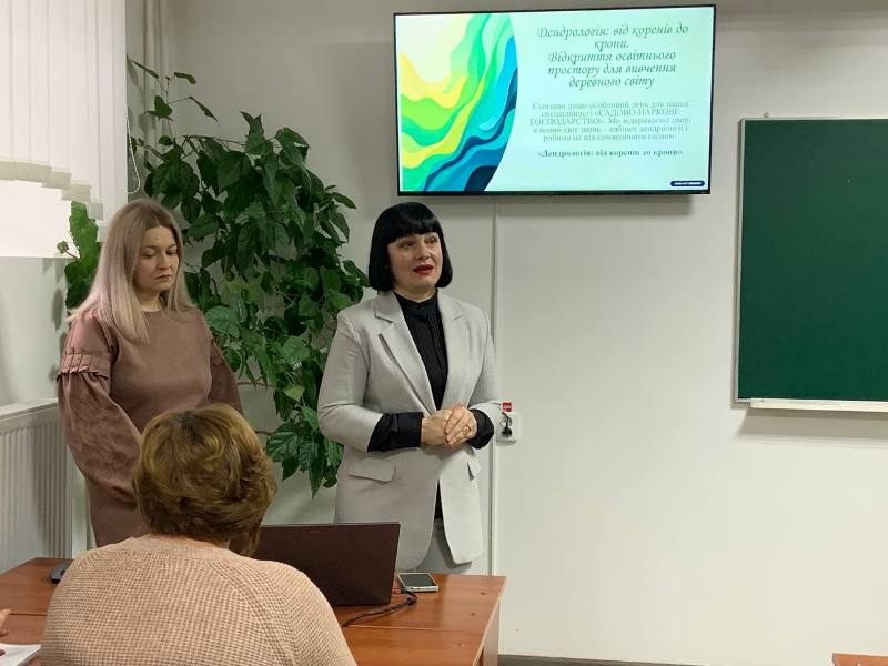 Уляна ДИНЯ, викладач циклової комісії інженерних та аграрних дисциплін, представила презентацію оновленої лабораторії дендрології «Дендрологія: від коренів до крони. Відкриття освітнього простору для вивчення деревного світу». Розповіла присутнім, що вивчення дендрології є фундаментальним для спеціалістів садово-паркового господарства, оскільки дерева та кущі є основним будівельним матеріалом у ландшафтному дизайні та озелененні. Без цих знань неможливо якісно проєктувати, створювати та доглядати за зеленими насадженнями.