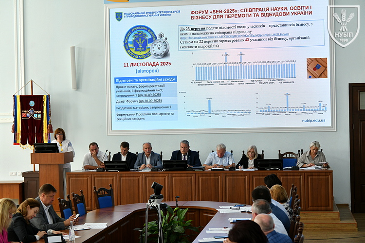 Проректор з наукової роботи та інноваційної діяльності Оксана ТОНХА повідомила про хід підготовки до проведення Форуму «SEB-2025». Вже зареєструвалося 42 учасники від бізнесу. Протягом тижня буде остаточна редакція програми заходу.