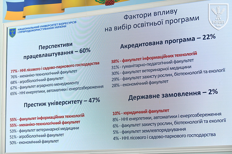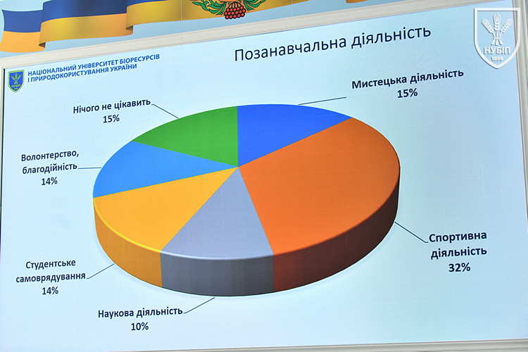 Результати анкетування студентів першого курсу представив керівник центру забезпечення якості освіти Ярослав РУДИК. Студентів запитали про джерела інформації, звідки вони дізналися про університет, і тут першість має офіційний сайт, фактори, які вплинули на вибір закладу вищої освіти, очікування від навчання, позанавчальної діяльності.