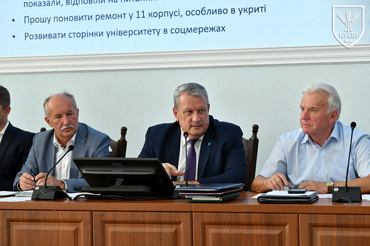Декани факультетів землевпорядкування Тарас ЄВСЮКОВ, конструювання і дизайну Зиновій РУЖИЛО та інформаційних технологій Ігор БОЛБОТ доповіли про стан відвідування занять студентами. Серед викликів — виїзд студентів за кордон, зміна місця проживання, а отже і навчання тощо.