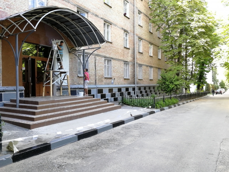 Було зроблено капітальний ремонт вхідного фасаду, де проведено зачистку, шпаклювання, ґрунтування і нанесення штукатурки «Мозаїка», замінено світильник на новий з економ-лампою.