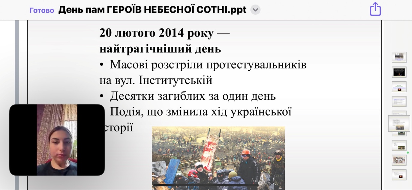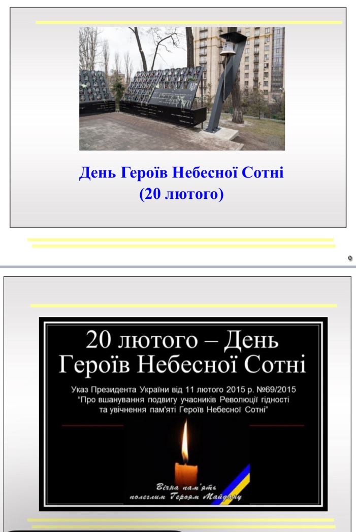 До Дня пам’яті Героїв Небесної Сотні, встановленого Указом Президента України на вшанування подвигу учасників Революції Гідності 2013–2014 років, наставником групи ПО-25002бст проведено виховний захід зі студентами, присвячений увічненню пам’яті загиблих за свободу та гідність України.