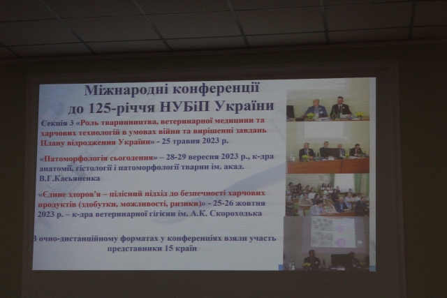 До 125-річчя НУБіП на факультеті проведено секцію 3 «Роль тваринництва, ветеринарної медицини та харчових технологій в умовах війни та вирішенні завдань Плану відродження України», Міжнародні конференції «Патоморфологія сьогодення», «Єдине здоров’я – цілісний підхід до безпечності харчових продуктів (здобутки, можливості, ризики)» і ряд інших заходів.