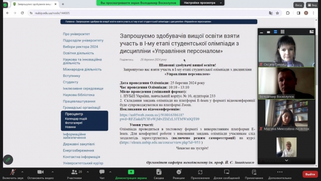 22, 25 і 27 березня на кафедрі менеджменту ім. проф. Й. С. Завадського було проведено студентську олімпіаду в 2023–2024 н. р. з дисциплін «Менеджмент», «Управління персоналом» і «Стратегічне управління» серед здобувачів вищої освіти.