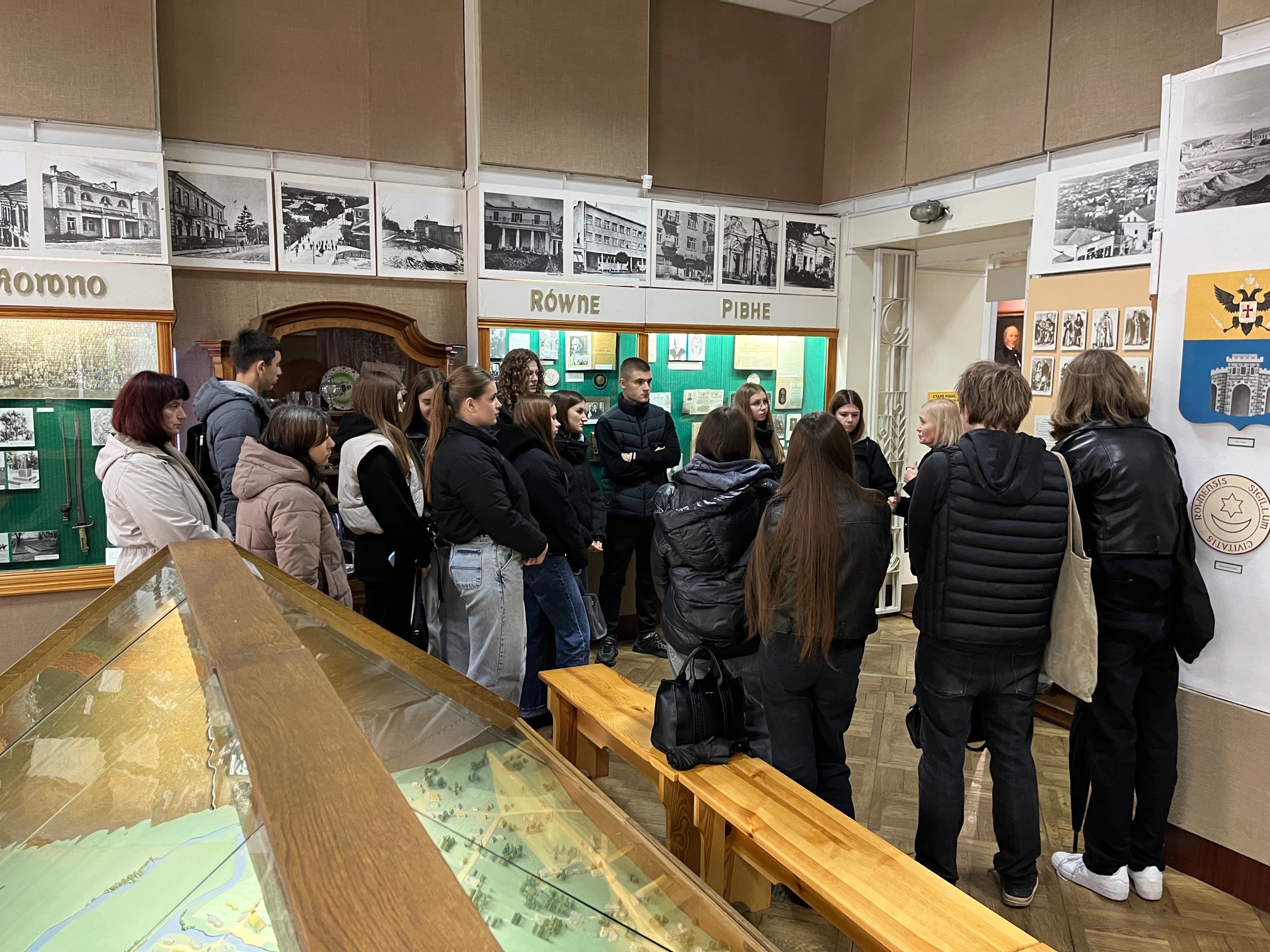 В рамках проведення тижня юридично-соціальних дисциплін для здобувачів освіти земельно-правового відділення 07 жовтня було проведено тематичну екскурсію на тему «Старе Рівне» в Рівненському обласному краєзнавчому музеї.