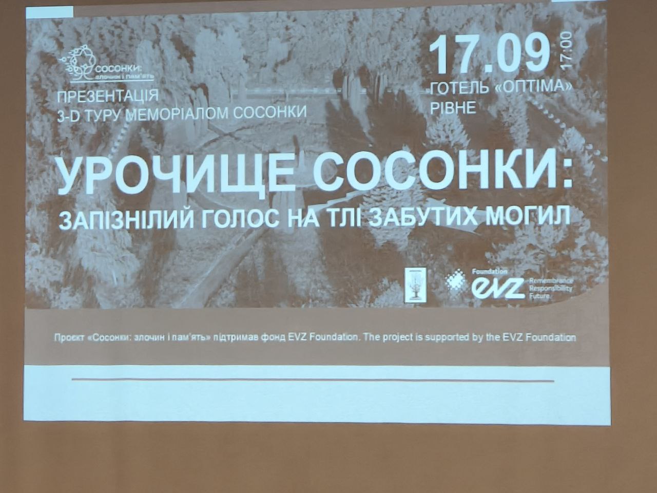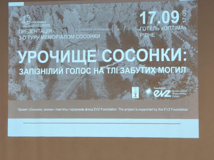 У рівненському готелі Optima презентували 3D-тур урочищем Сосонки, яке відвідали студенти земельно-правового відділення. Це місце, де у 1941 році розстріляли понад 17 тисяч євреїв. Проєкт має на меті повернути пам’ять про ті події, які приховувала від нас радянська влада.