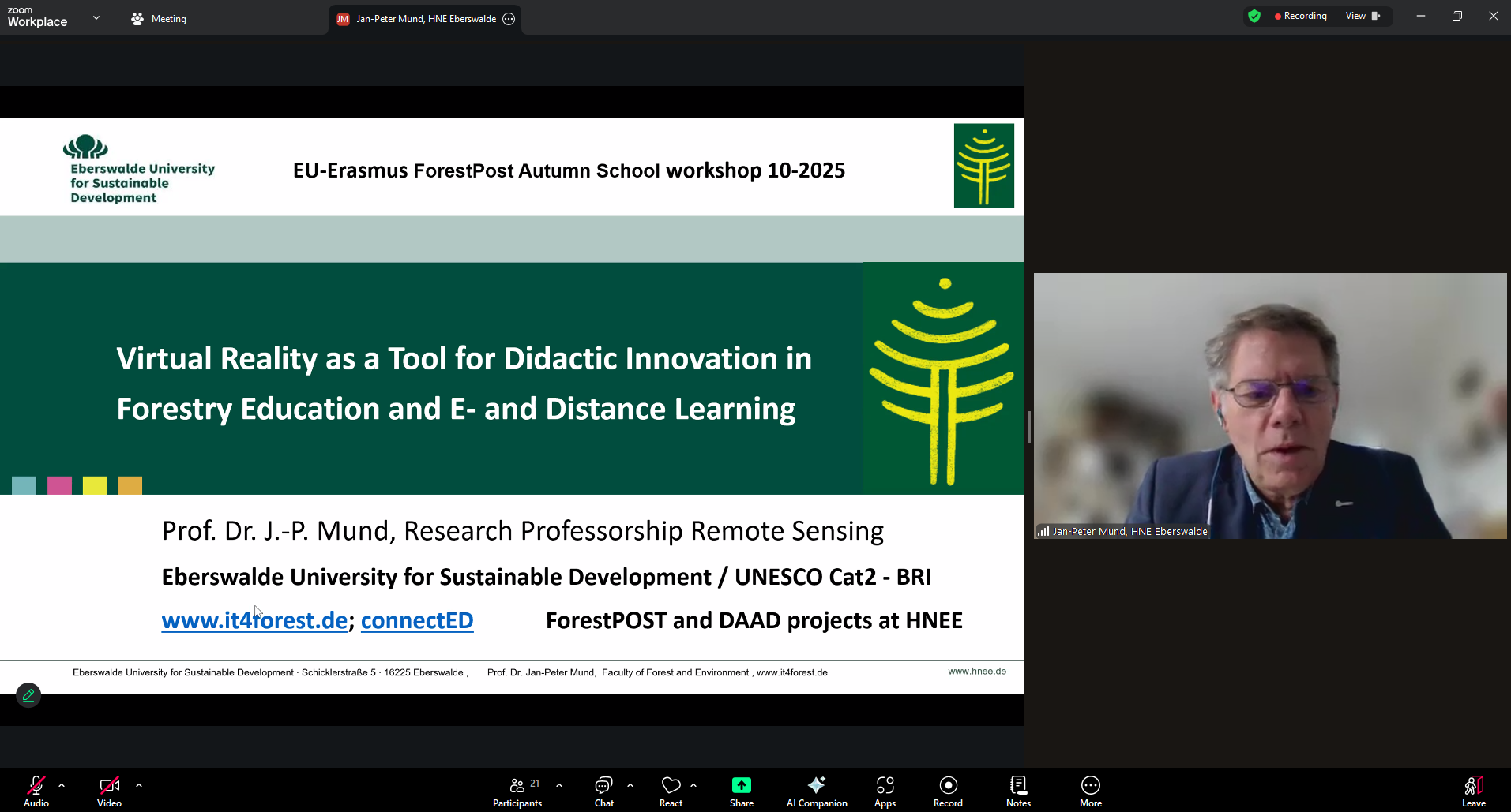 проф. Йоган-Пауль Мунд (Eberswalde University for Sustainable Development, Німеччина), який презентував інтерактивну VR-платформу для навчання з лісового менеджменту та безпечної роботи в лісі ;