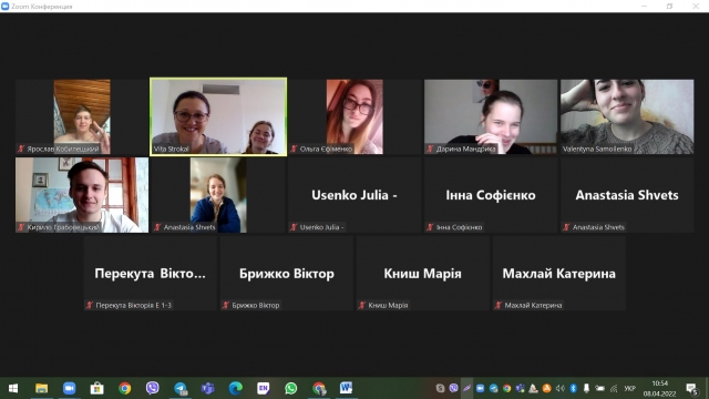 Ще одним прикладом роботи наставників, є проведена 8 квітня 2022 року чергова виховна-організаційна година наставником академічної групи 1 курсу зі спеціальності 101 Екологія, доцентом кафедри Вітою Строкаль. Наставник групи почала он-лайн зустріч з організаційних питань дистанційного навчання. Вона повідомила про розклад складання екзаменів та початок екзаменаційної сесії, яка триватиме з 20 травня по 3 червня 2022 року. Також під час зустрічі, куратор групи звернула увагу студентів на слова ректора до студентів, які були озвучені у його зверненні до колективу університету та студентства. Не менш важливим було питання на зустрічі щодо можливостей студентів долучатися та приєднуватися до он-лайн занять. У воєнний час, ми всі розуміємо, що відвідування студентів залежить від багатьох зовнішніх факторів, зокрема наявності зв’язку, Інтернет-зєднань, світла тощо. У зв’язку з цим, куратором Вітою Строкаль було проведено опитування студентів групи, в якому 87,5 % студентів зазначили, що мають можливість приєднуватися до он-лайн занять та виконувати завдання (і це є досить добрий показник), 12,5 % студентів групи на даний час знаходяться на територіях, що є тимчасово окупованими і тому у них виникає проблема із доступом до платформи Elearn та доступом до он-лайн занять.