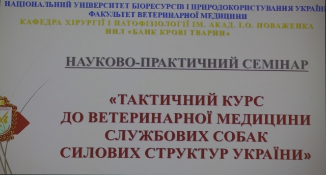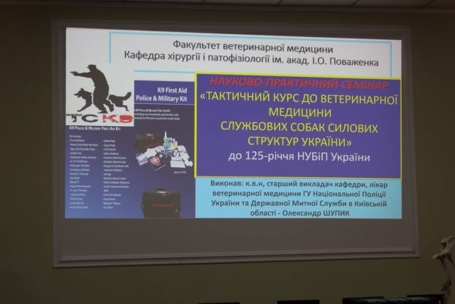 На науково-практичному семінарі доповідь на тему: «Тактичний курс до ветеринарної медицини службових собак силових структур України» презентував к.вет.н., старший викладач кафедри хірургії і патофізіології ім. акад. І.О. Поваженка Олександр Шупик.