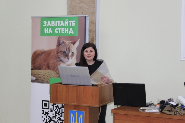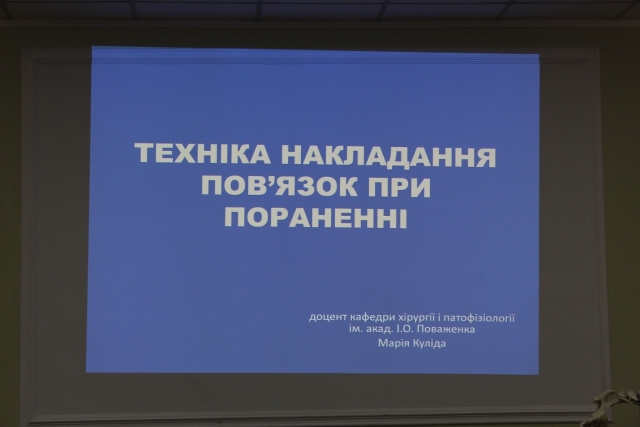 Марія Куліда, к.вет.н., доцент кафедри хірургії і патофізіології ім. акад. І.О. Поваженка презентувала доповідь на тему: «Техніка накладання пов’язок при пораненнях».