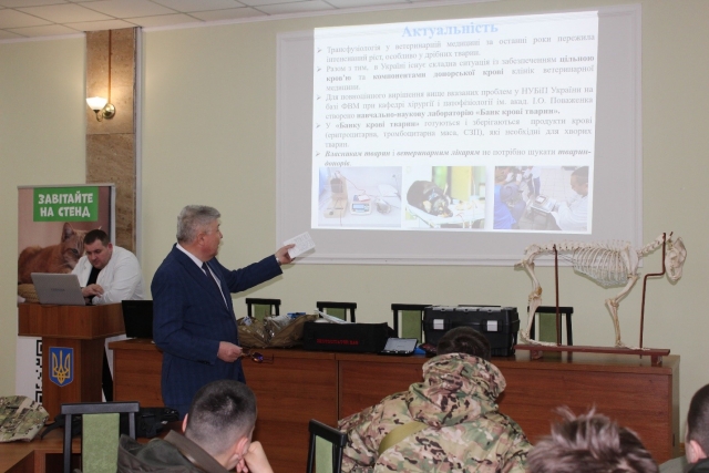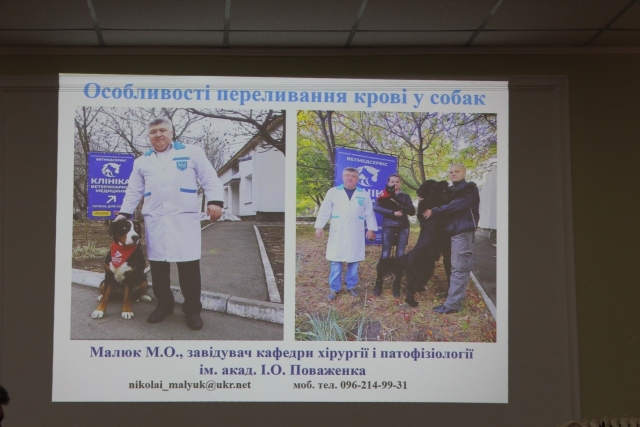 Микола Малюк, д.вет.н., професор, завідувач кафедри хірургії і патофізіології ім. акад. І.О. Поваженка представив доповідь на тему: «Особливості переливання крові у собак».