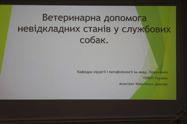 Дмитро Коваленко, асистент кафедри хірургії і патофізіології ім. акад. І.О. Поваженка презентував доповідь на тему: «Ветеринарна допомога за невідкладних станів у службових собак».