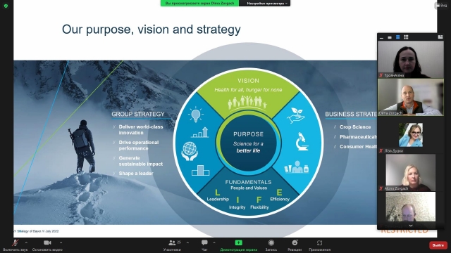 Значна частина зустрічі була сфокусована на загальній характеристиці діяльності компанії Bayer, як міжнародної компанії, особливо її відділу сільського господарства (Crop Science).