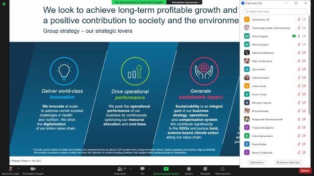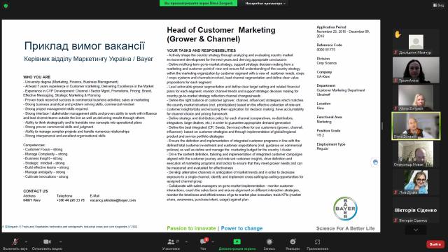 В межах діяльності студентського наукового гуртка «ДНК лідера» старшим викладачем кафедри менеджменту ім. проф. Й.С. Завадського Альоною Зоргач була організована онлайн-зустріч студентів з Дмитром Зоргачем – менеджером з маркетингу засобів захисту рослин регіону ЕМЕА, Bayer Crop Science. Тема зустрічі: «Сучасні тенденції розвитку ринку засобів захисту рослин в Європі».