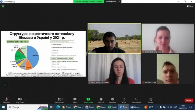 В умовах сучасного стану енергетичної інфраструктури варто максимально використати альтернативні джерела енергетичного забезпечення країни. В межах діяльності студентського наукового гуртка «ДНК Лідера» 6 листопада 2023 року доцентом кафедри менеджменту ім. проф. Й. С. Завадського Наталією Драгнєвою була організована онлайн-зустріч студентів з Семеном Драгнєвим – експертом Біоенергетичної асоціації України. Тема зустрічі: «Управління заготівлею аграрної біомаси для енергетичних потреб».