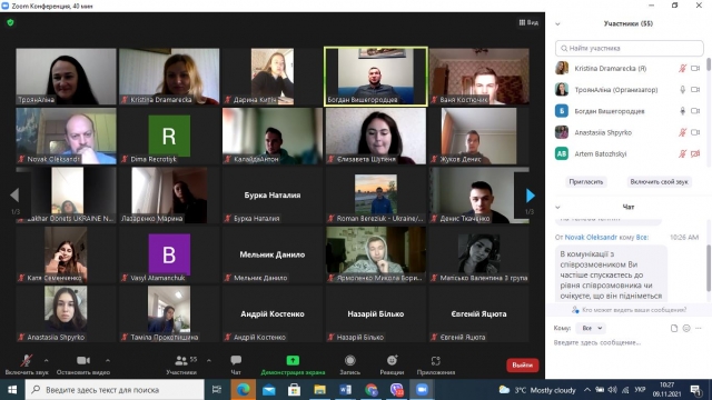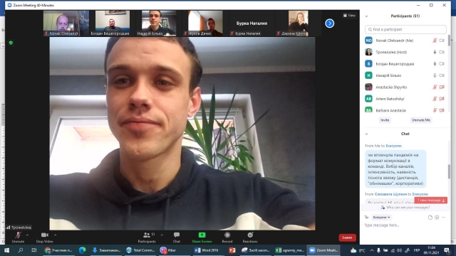 З метою ознайомлення здобувачів вищої освіти з питаннями ефективного ділового спілкування 9 листопада 2021 року доцентом кафедри менеджменту ім. проф. Й. С. Завадського Аліною Троян в межах діяльності студентського наукового гуртка «ДНК Лідера» була організована онлайн-зустріч з Богданом Вишегородцевим – лінійним продюсером проєктів телевізійних каналів СТБ, ІСTV, Нового каналу: «Вагітна в 16», «Зважені та щасливі», «Я соромлюсь свого тіла», «Пекельна кухня», «Нові лідери», «Від пацанки до панянки».