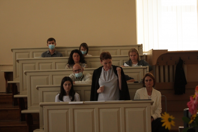 Засідання відкрила декан факультету Олена Яра із доповіддю про підсумки діяльності науково-педагогічного колективу юридичного факультету у 2020-2021 навчальному році та завдання на новий навчальний рік. Доповідач привітала усіх присутніх з 30-ти річчям Незалежності нашої держави, а колектив факультету з 20-ти річчям з дня створення юридичного факультету та разом з проректором Василем Шинкаруком вручили почесні нагороди НПП які були відзначені університетськими та відомчими нагородами.
