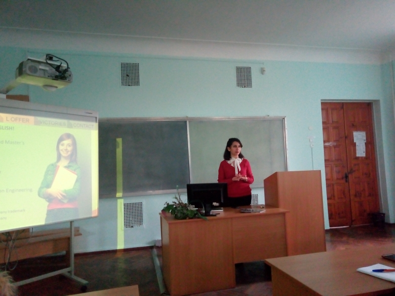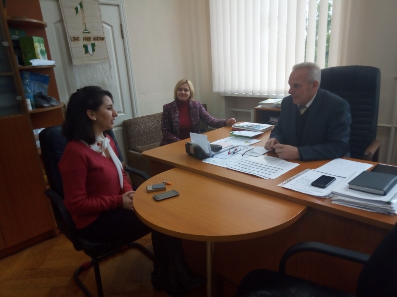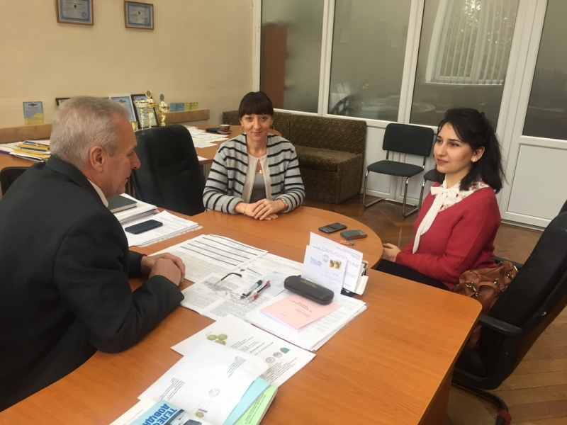 Під час зустрічі з деканом факультету Миколою Долею, заступниками декана Людмилою Ющенко, Петром Дроздом, Юлією Рибалко, керівником міжнародних програм факультету Валерією Бондарь та зі студентами факультету Лія Саядян представила інформацію про факультет екології Університету екології та управління (м. Варшава, Польща), а також детально розповіла про програму Erasmus+, яка дає можливість студентам та викладачам співпрацювати з провідними зарубіжними університетами.