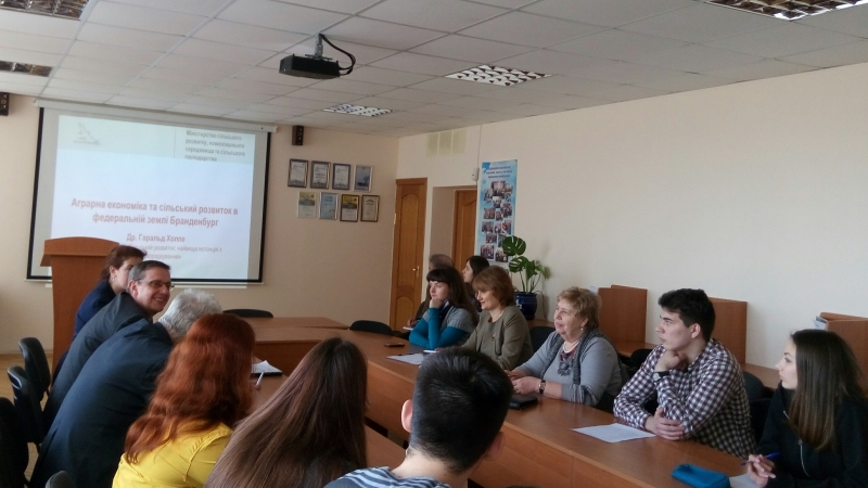 29 березня 2017 року у Національному університеті біоресурсів і природокористування України за ініціативи декана факультету аграрного менеджменту А.Д.Остапчука та кафедри менеджменту ім. проф. Й.С. Завадського і сприяння проректора з науково-педагогічної роботи, міжнародної діяльності та розвитку В.А. Ткачука та Німецько-українського агрополітичного діалогу (APD) при Інституті економічних досліджень та політичних консультацій відбувся семінар на тему: «Досвід розвитку сільського господарства і сільських територій у федеральній землі Бранденбург» за участю Др. Харальда Хоппе – керівника департаменту сільського розвитку, вищої установи з питань землеустрою в Міністерстві сільського розвитку, навколишнього середовища і сільського господарства у федеральній землі Бранденбург.