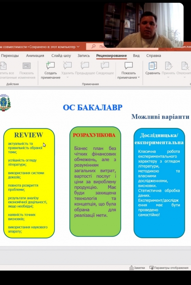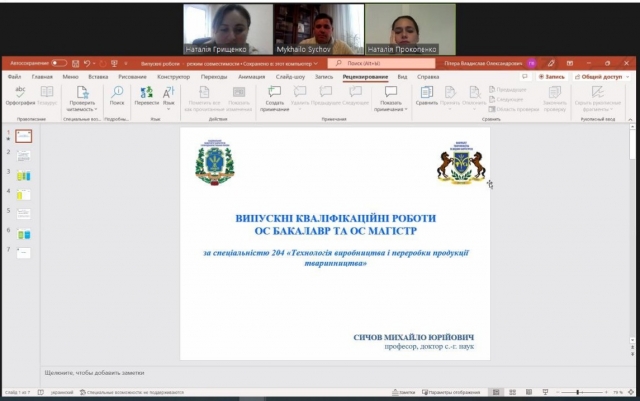 Михайло Сичов представив проєкт можливих варіантів складової компоненти кваліфікаційних робіт ОС «Бакалавр» і «Магістр» спеціальності 204 – «Технологія виробництва і переробки продукції тваринництва», оскільки ключовим завданням онлайн зустрічі робочої групи було оновлення і модернізація методичної бази.