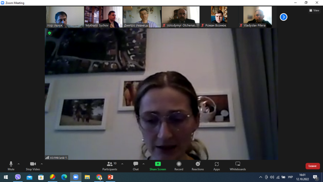В кінці її доповіді, учасниками засідання було задано низку питань, на які доповідач змогла надати змістовну відповідь. Також було обговорено подальші перспективи проведення науково-дослідної роботи. Бажаємо Тетяні успішно провести дослідження!