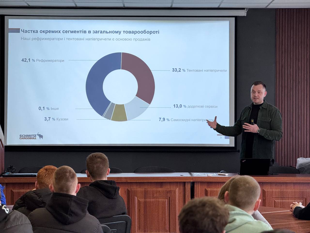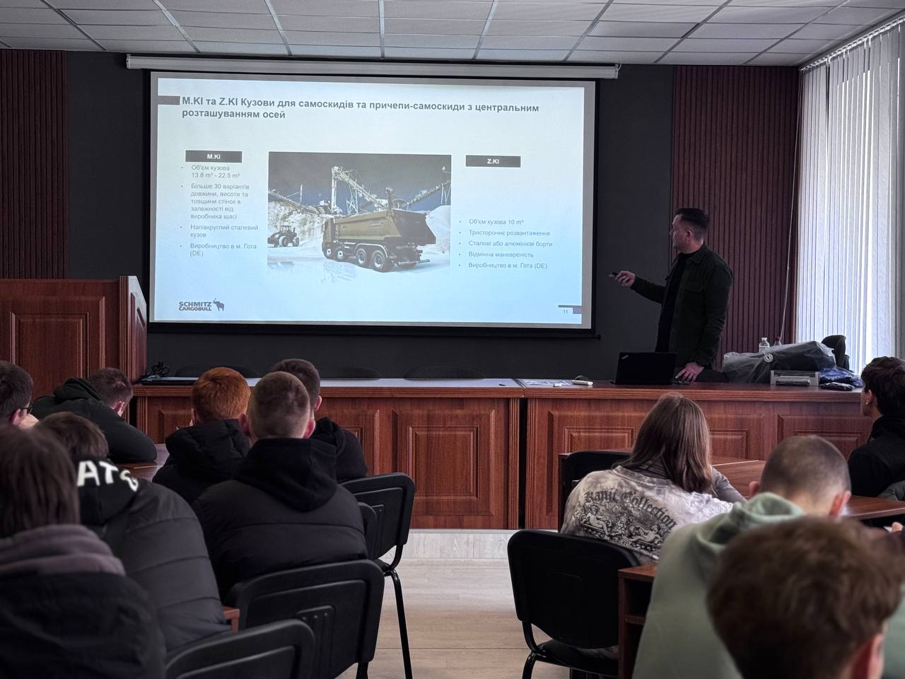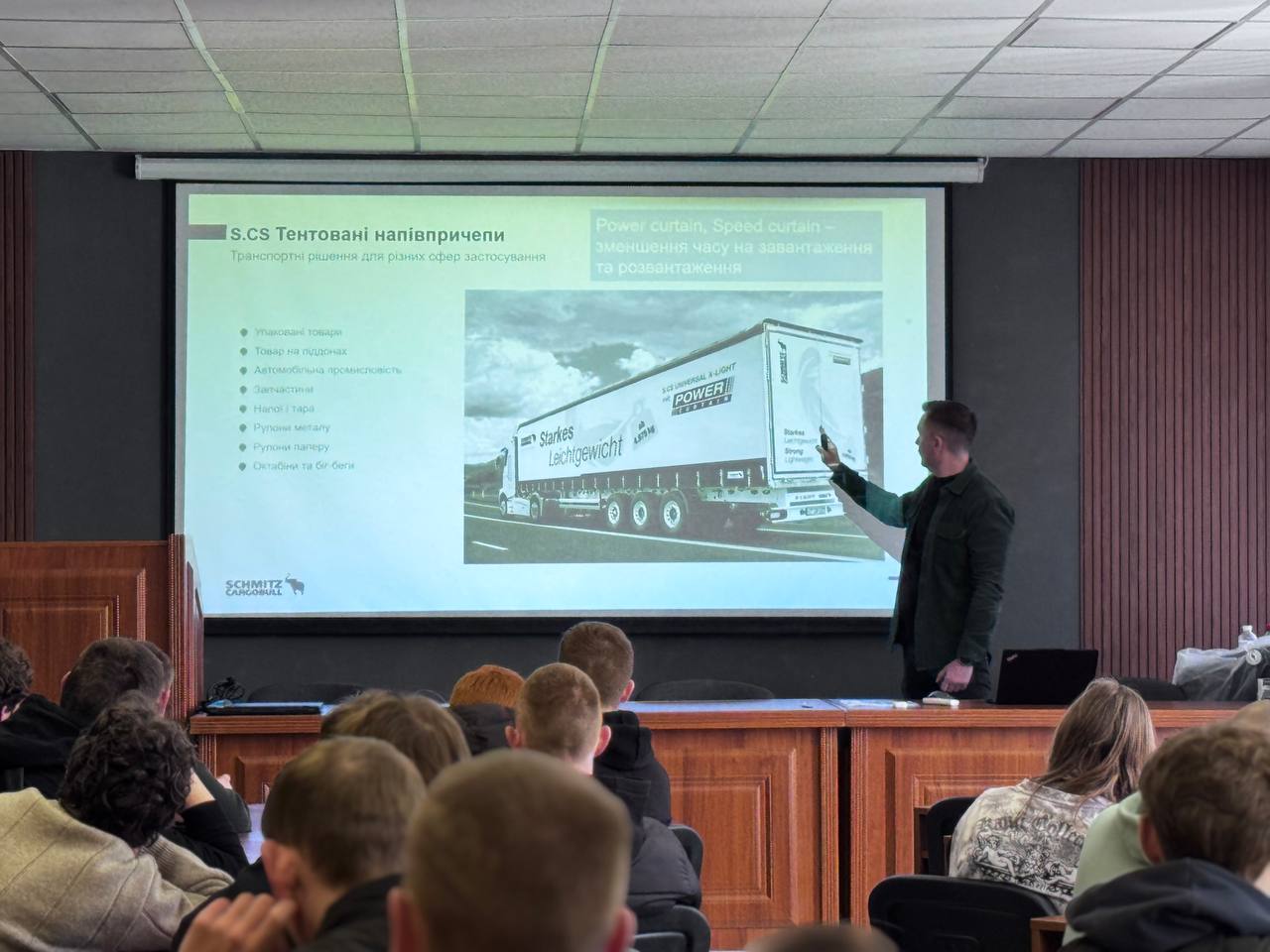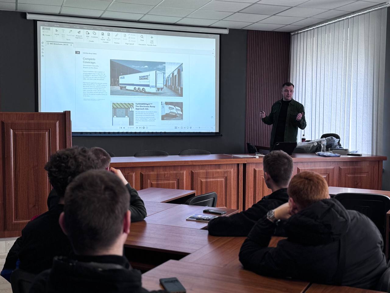 Для здобувачів освіти стартував цикл практичних лекцій від провідного експерта компанії Schmitz Cargobull Максима КРУПСЬКОГО. Schmitz Cargobull є одним із лідерів європейського ринку з виробництва вантажних причепів, напівпричепів та рефрижераторів і відомий високими стандартами якості, інноваційними технологіями та орієнтацією на безпеку і ефективність перевезень.