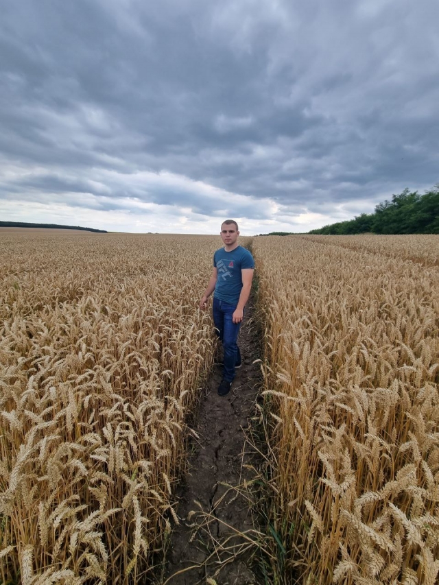 Сергій Степаненко: "Виконую досліди за темою магістерської дипломної роботи. Вже проводимо збирання ячменю. Горох вже зібрали."