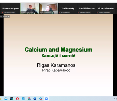 Наступним був доктор Ригас Караманос (грунтознавець у відставці. Канада) з темою «Кальцій і магній».