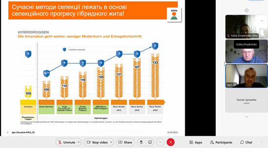 Викладачами кафедри за час воєнного стану в Україні вже було організовано чотири зустрічі з випускиками селекціонерами, які працюють в провідних насіннєвих та селекційних станціях країни. Раніше в період очного навчання організовувалися виїзні заняття на селекційні станції та насіннєві господарства, проте в сучасних умовах навіть такі online зустрічі демонструють результативність нашої роботи.
