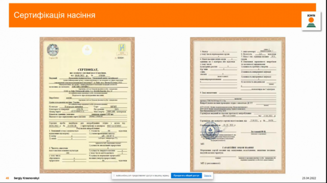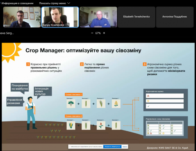 З Сергієм Красновським, начальником відділу розвитку продуктів та агросервісу ТОВ "КВС-УКРАЇНА" обговорили проблеми насінництва, експорту та імпорту насіннєвого матеріалу в Україні. Розпочав Сергій дискусію з основних тенденцій на ринку кукурудзи. Він звернув увагу, що за аналізом останніх трьох років Україна є лідером серед країн Європи за насіннєвими посівними площами кукурудзи. Також особливу увагу звернув доробці насіння зі свого досвіду в м. Кам'янець-Подільський.