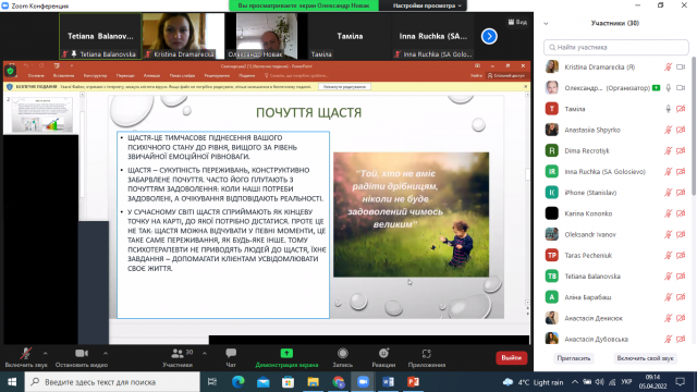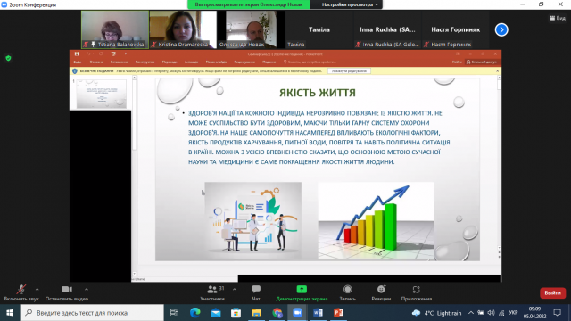 Під час роботи семінару увага здобувачів вищої освіти сфокусувалася на проблемах, які їх хвилюють. Староста 2 групи, 4 курсу факультету аграрного менеджмент та староста наукового гуртка «ДНК Лідера» Таміла Прокопишина емоційно і з орієнтиром на трагічні події сьогодення розкрила та представила учасникам семінару доповідь на тему: «Якість життя. Почуття щастя. Способи забезпечення здорового і щасливого життя людини». В роботі студентка розкрила, які основні аспекти визначають якість життя людини, що щастя кожна людина сприймає і розуміє індивідуально, навела основні складові забезпечення здорового способу життя.