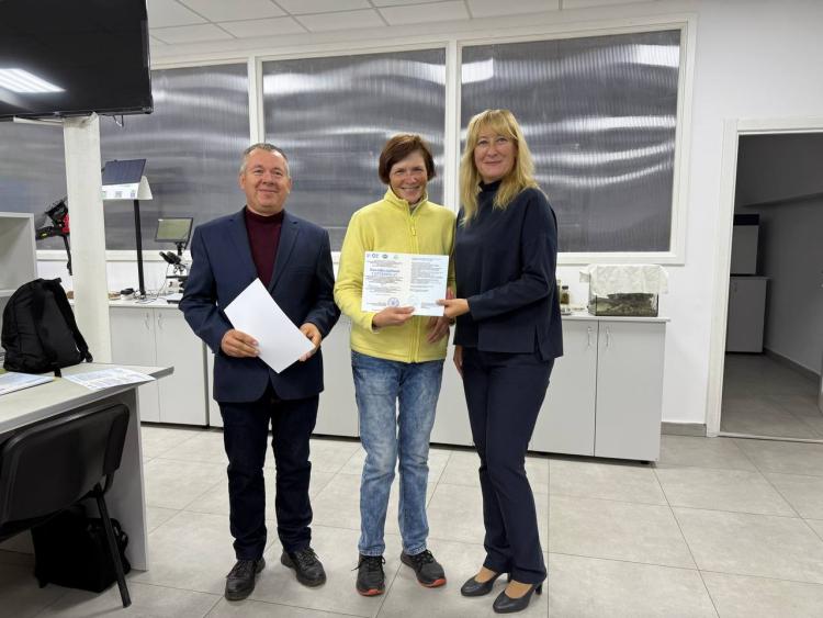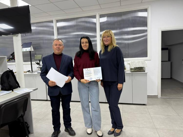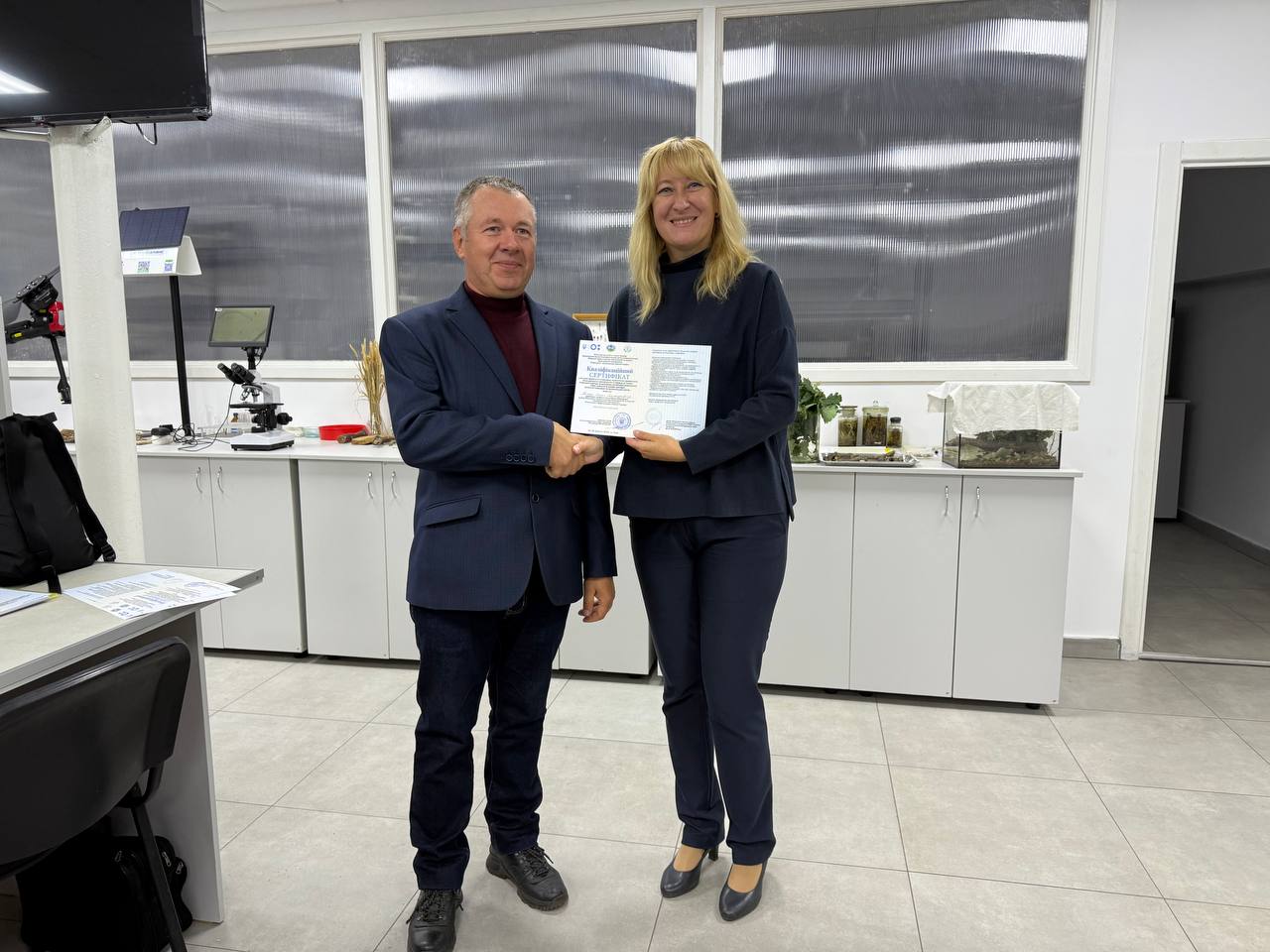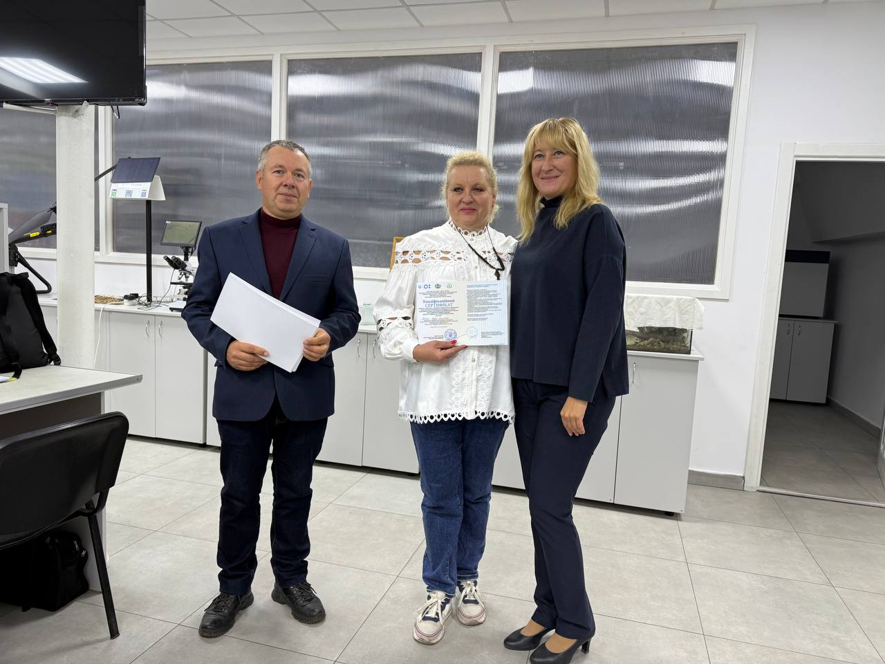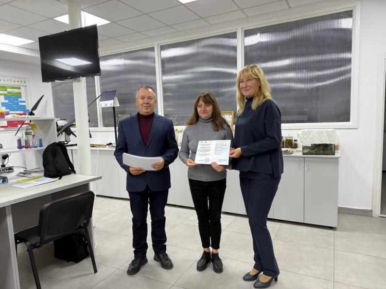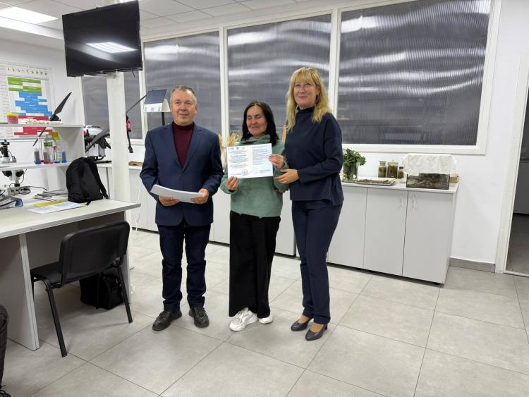 В сучасній навчально-науково-виробничій лабораторії «Моніторингу пестицидів у технологіях захисту рослин» пройшла практична робота під назвою «Комахи, як освітній інструмент: методичні та практичні аспекти використання». Під час занять педагоги ознайомилися з сучасними підходами до використання живих об’єктів у навчальному процесі, зокрема з можливостями застосування комах для формування практичних навичок і підвищення інтересу учнів до біології. Учасники отримали методичні рекомендації з утримання та догляду за навчальними об’єктами, а також обговорили шляхи інтеграції таких матеріалів у шкільні програми. В проблемній науково-дослідній лабораторії «Мікології і фітопатології» було розглянуто унаочнені методи викладання фітопатології з акцентом на борошнисту росу, сажкові та іржасті хвороби сільськогосподарських культур. Учасникам представили зразки рослин з ознаками ураження, ілюстративні матеріали та методики діагностики, що дозволяють наочно продемонструвати морфологічні особливості збудників і симптоматику уражень рослин. Обговорювалися також шляхи формування у школярів розуміння біологічної природи цих хвороб, принципів їх поширення та підходів до захисту рослин. Результатом роботи стало напрацювання практичних рекомендацій щодо ефективного використання унаочнених матеріалів для поглиблення знань учнів із фітопатології та розвитку їхнього екологічного мислення.