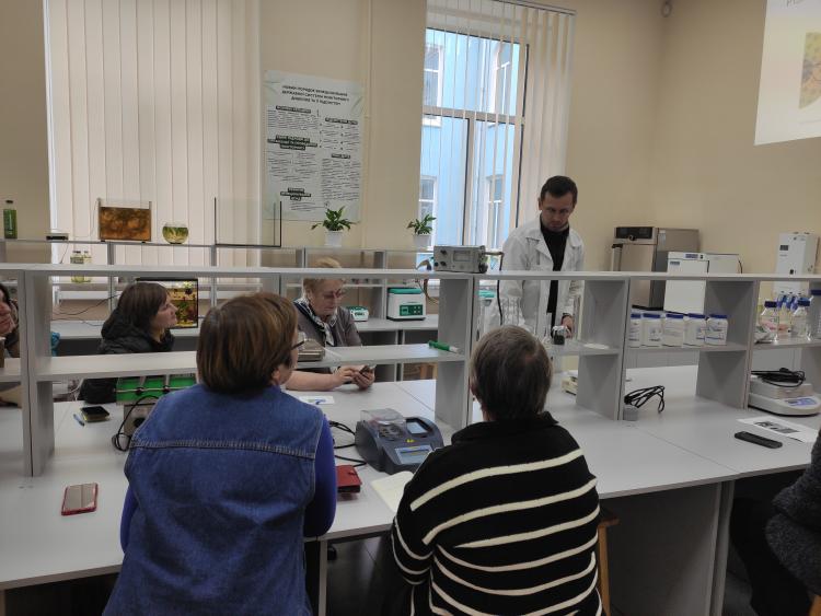 В навчально-науковій лабораторії «Моніторингу довкілля» пройшла практична робота під назвою «Як знайти радіацію», де викладачі ознайомилися з приладом радіометр-дозиметр альфа-бета-гамма-випромінювань РКС-01 СТОРА-АБГ та його можливостями. В навчально-науково-виробничій лабораторії «Екологічного контролю довкілля» гості взяли участь у лабораторній роботі, де визначили вміст нітратів у таких продуктах як: морква, картопля, буряк.
