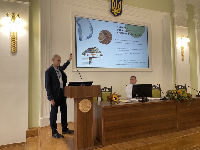 Богдан Шпак виступив з презентацією «Технології захисту рослин на засадах сталого розвитку: сучасність та майбутнє». Він зазначив, що темпи зростання населення Землі, як ніколи високі й проблема голоду у країнах, що розвивається, стоїть надзвичайно гостро — 309 мільйонів людей у 71 країні світу стикаються із проблемою гострого голоду. Кліматичні зміни та нераціональне ведення сільського господарства призводять до катастрофічних втрат родючих земель. Крім того, пан Богдан окреслив тренди розвитку сільського господарства: це точне сільське господарство, оптимізація внесення засобів захисту рослин та добрив, використання інноваційних технологій (безпілотні транспортні засоби, машинне навчання, прогнозування на основі «big data», відновлюване землеробство (no-till, low-till технології, секвестрація вуглецю).