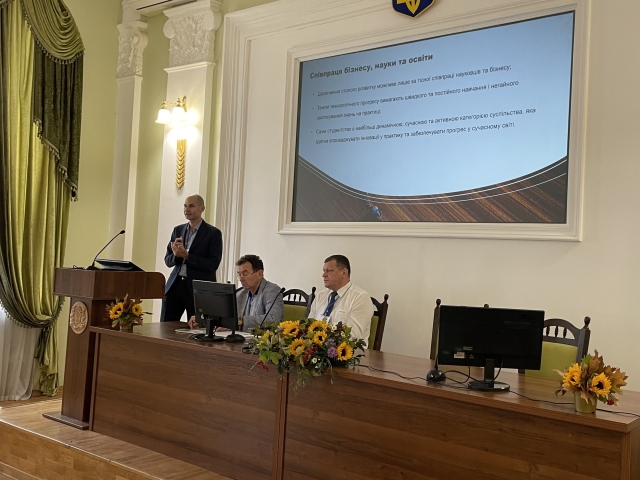 Віталій Коваленко та Юлія Коломієць наголосили, що співпраця бізнесу, освіти і науки є вкрай необхідною, оскільки знання та навички набуті студентами під час теоретичного навчання необхідно підкріплювати професійними компетенціями, які здобуваються на виробничих практиках.