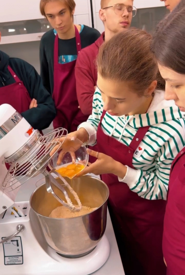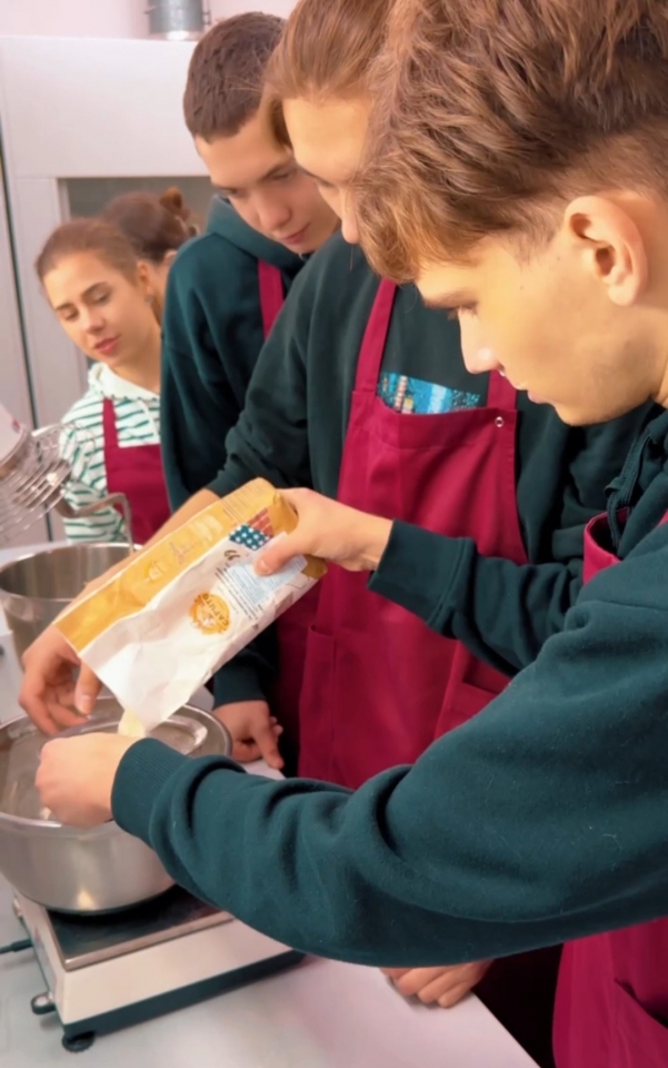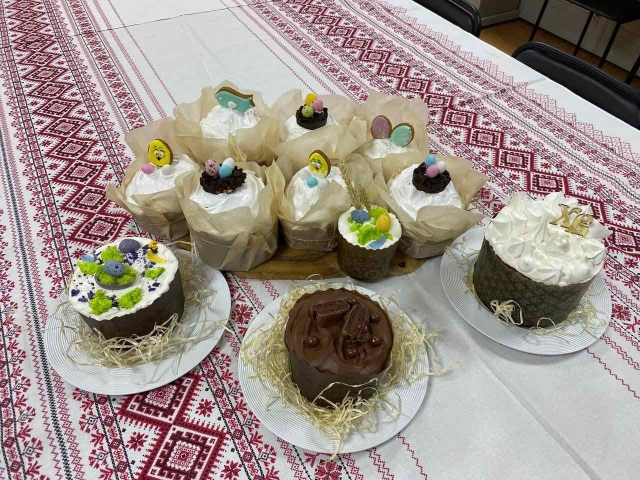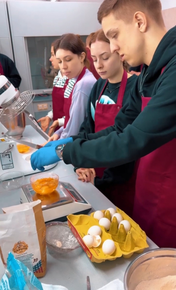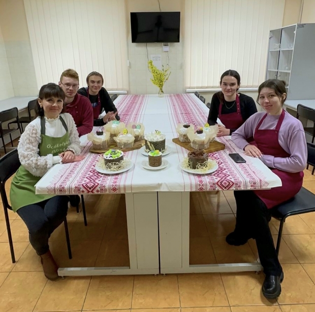 «Найважливішим атрибутом святкового столу є паска, яка сьогодні має безліч різних видів та смаків. Найбільш улюбленими є – класична українська паска, італійська паска (панетонне), крафін» – пояснює студентам Микола Ніколаєнко.