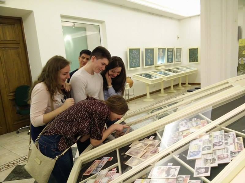 В самому центрі столиці, поруч з основною будівлею, яка вражає своєю красою і величчю, розташовано музей грошей. В невеликому приміщенні зібрано величезну колекцію експонатів, починаючи від виникнення грошей до теперішнього часу. Екскурсоводи під керівництвом Тріфонової Наталії Олексіївни дуже цікаво й змістовно провели нам екскурсію. Ми побачили зразки примітивних товаро-грошей; перші гроші Київської Русі, які з’явились у ХХ-ХІ ст. (так звані златники і срібники); перші гривні, які виникли у «безмонетний період» ХІІ-ХIV cт. у вигляді срібних зливків; побачили колекції валют країн світу тощо. На завершення екскурсії пані Наталя презентувала усім нам сувеніри – значок у вигляді першої гривні, а ми у відповідь - буклети про наш факультет та пам’ятні календарики. Дякуємо співробітникам музею за цікаву й приємну подію!