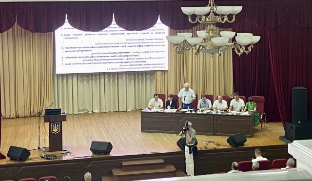 Голова Первинної профспілкової організації студентів та аспірантів Олексій Мельник доповів про напрями діяльності організації, а також відмітив, що профспілка університету завжди допомагає та підтримує всі культурні та спортивні заходи, захищає інтереси студентів та аспірантів НУБіП України. Виконуюча обов’язки голови Сенату студентської організації Олександра Калініченко ознайомила присутніх зі структурою Сенату, а також поінформувала про напрями діяльності органів студентського самоврядування університету.