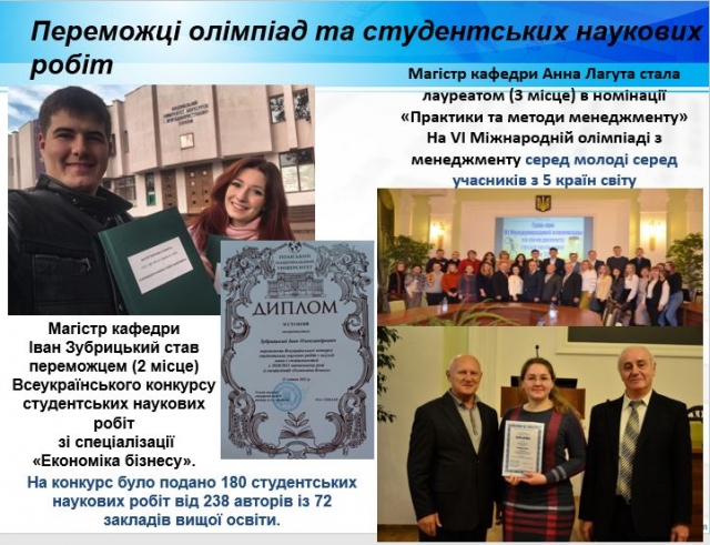 Наукова складова роботи гуртка за ці 2 роки дала найпомітніші результати, адже кілька перемог на Всеукраїнських конкурсах наукових робіт (І-ше місце – у Дмитра Опалата, ІІ-ге – в Івана Зубрицького та ІІІ-тє - у Тетяни Яремчук), призове місце на Міжнародній олімпіаді з менеджменту від Анни Лагути - все це засвідчує високий рівень підготовки студентів факультету аграрного менеджменту, і в першу чергу активних гуртківців.