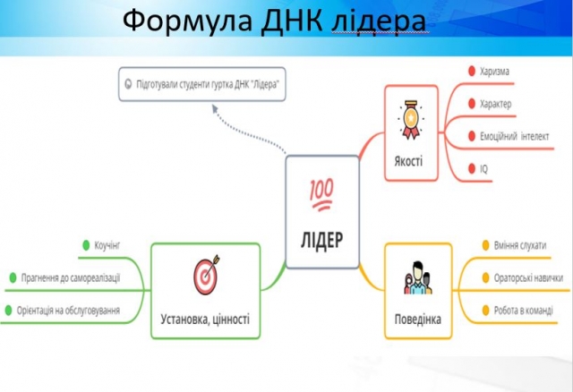 Діяльність гуртка «ДНК лідера», згідно визначеної концепції, спрямована на розвиток творчих здібностей студентів, набуття ними загальних та спеціальних компетентностей, необхідних сучасним керівникам-лідерам, у тому числі шляхом проведення власних наукових досліджень. Основними напрямами роботи гуртка «ДНК лідера» стали: