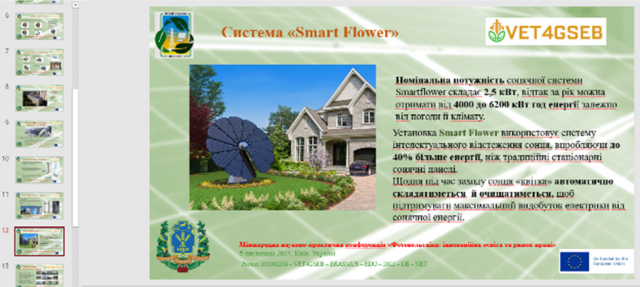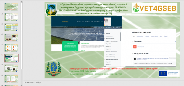 У Навчально-науковому інституті енергетики, автоматики і енергозбереження Національного університету біоресурсів і природокористування України в рамках виконання проєкту ERASMUS+ «VET partnership For Green and Smart Electricity in Building» (Партнерство професійно-технічної освіти для екологічної та розумної електроенергії в будівлях) відбулась міжнародна науково-практична конференція «Фотовольтаїка: професійно-технічна освіта та ринок праці».