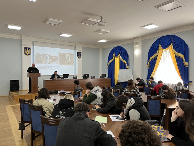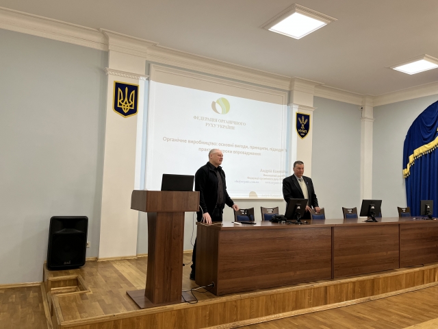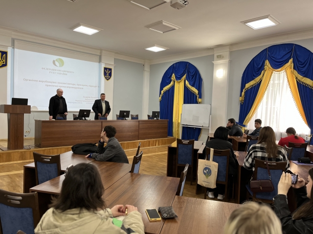 Під час виступу пан Андрій ознайомив студентів з основними принципами, перевагами та підходами до органічного виробництва; практичними кроками щодо впровадження стандартів органічного виробництва та перспективами органічного козівництва в Україні. Лектор підкреслив, що органічне сільське господарство поєднує традиції, інновації та наукові досягнення з метою покращення стану довкілля та добробуту тварин. Органічне тваринництво в Україні розвивається згідно з міжнародними стандартами, зокрема Регламентами ЄС і є перспективним напрямом сталого аграрного виробництва. Розвиток органічного козівництва поки що має обмежене поширення, але демонструє позитивну динаміку, особливо в контексті зростання попиту на екологічно чисті продукти харчування, зокрема козине молоко та сири. Пан Андрій особливу увагу закцентував на тому, що особливості органічної продукції полягають у забезпеченні її повної простежуваності. Це постійний контроль на всіх етапах виробництва – від ферми до столу; це добровільна сертифікація та висока відповідальність виробника. Він підкреслив, що органічне виробництво – це не лише технологія, а філософія, світогляд і стиль життя!