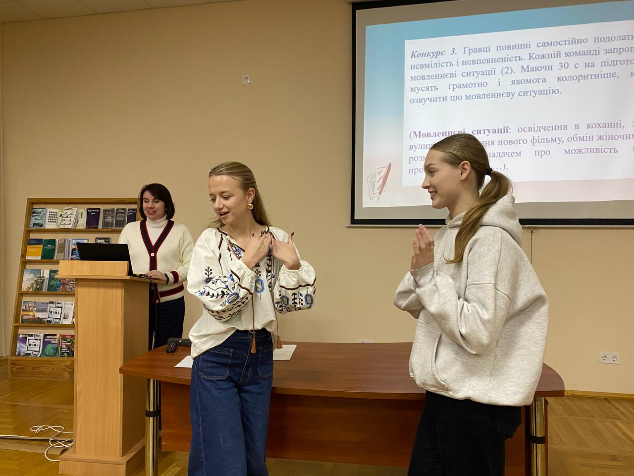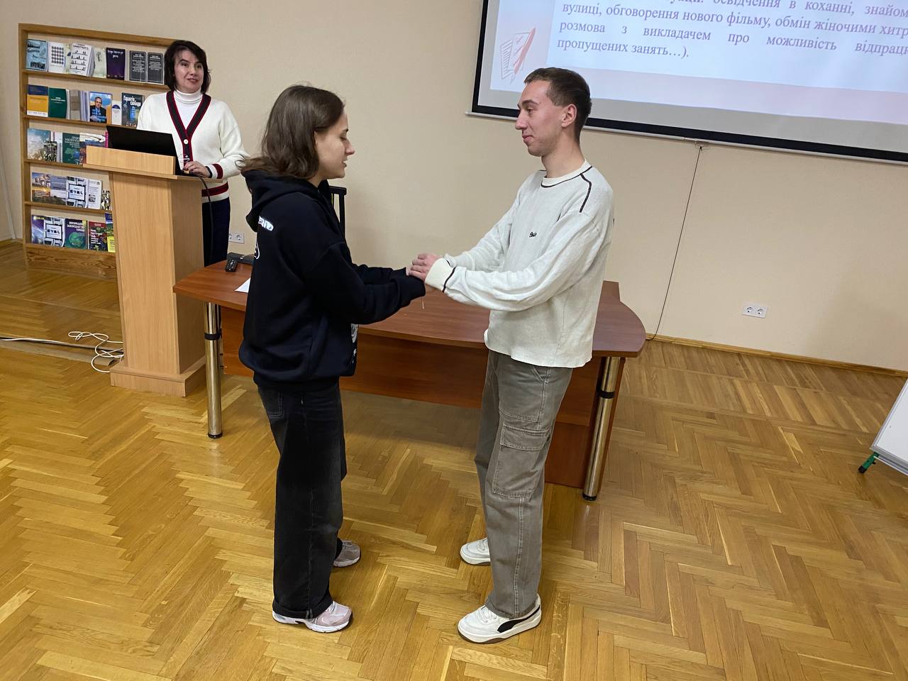 Командам також було запропоновано мовленнєві ситуації – від романтичного освідчення до обговорення нового фільму чи прохання до викладача про відпрацювання занять. Відтворення типових життєвих діалогів допомагало студентам долати мовну невпевненість, розвивати вміння говорити грамотно, колоритно й красномовно.
