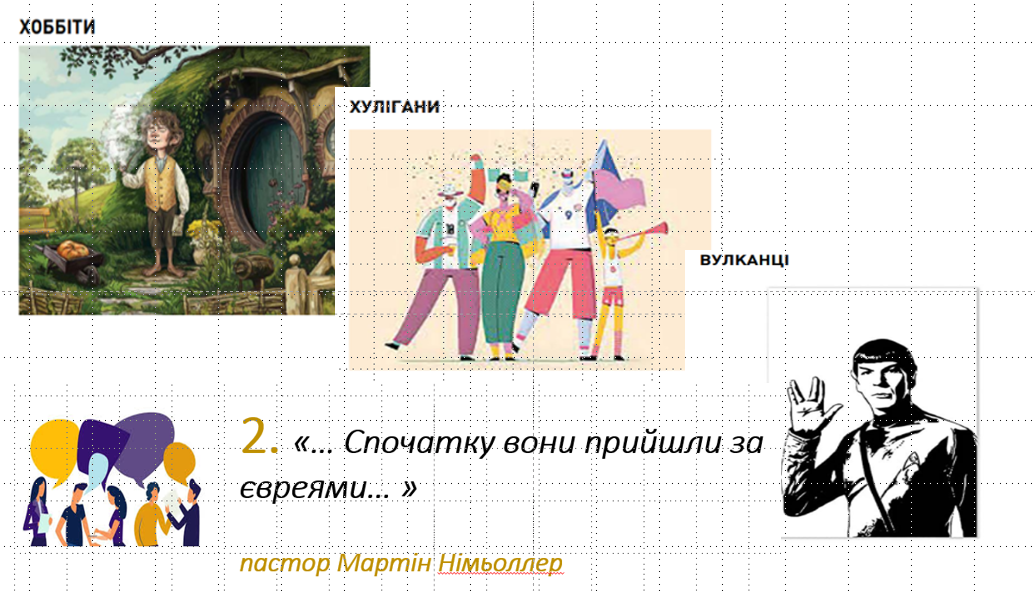 Мажорний лад в аудиторії, змінився на мінорний при обговоренні цитати пастора Мартіна Німьоллера «Спочатку вони прийшли за євреями…». Це як відголосок Другої світової війни, але який ятрив емоції учасників семінару, через триваючу війну в Україні. Дискусія набула нового оберту, адже тема досить чутлива.