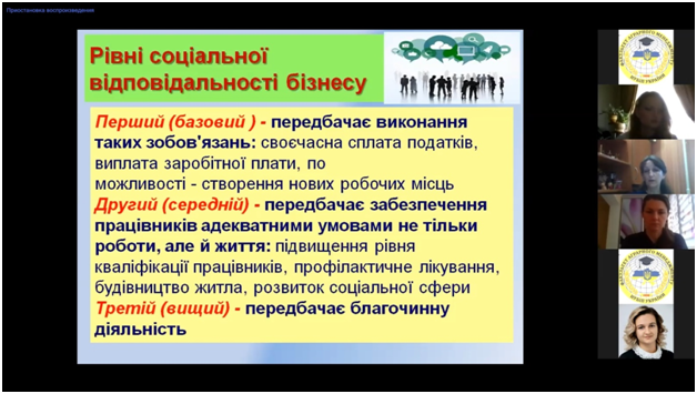 Тому потреба в етичності та соціальній відповідальності бізнесу буде тільки посилюватися. Саме з таких (вище окреслених) аспектів було розпочато лекцію.