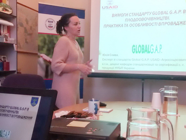 22 лютого відбулася бізнес зустріч, організована Аграрним центром БРІДЖЕС за підтримки проекту Американського агентства з міжнародного розвитку (USAID) «Підтримка аграрного і сільського розвитку». У зустрічі прийняли участь викладачі кафедри стандартизації та сертифікації сільськогосподарської продукції доцент Юлія Слива у ролі спікера, висвітлила практичні аспекти застосування стандарту GLOBAL GAP, доценти Наталія Сілонова та Наталія Мєдвєдєва та аспірант Тетяна Розбицька прийняли участь в обговоренні.