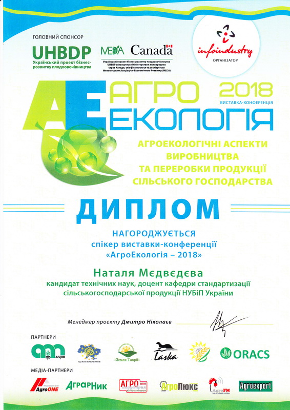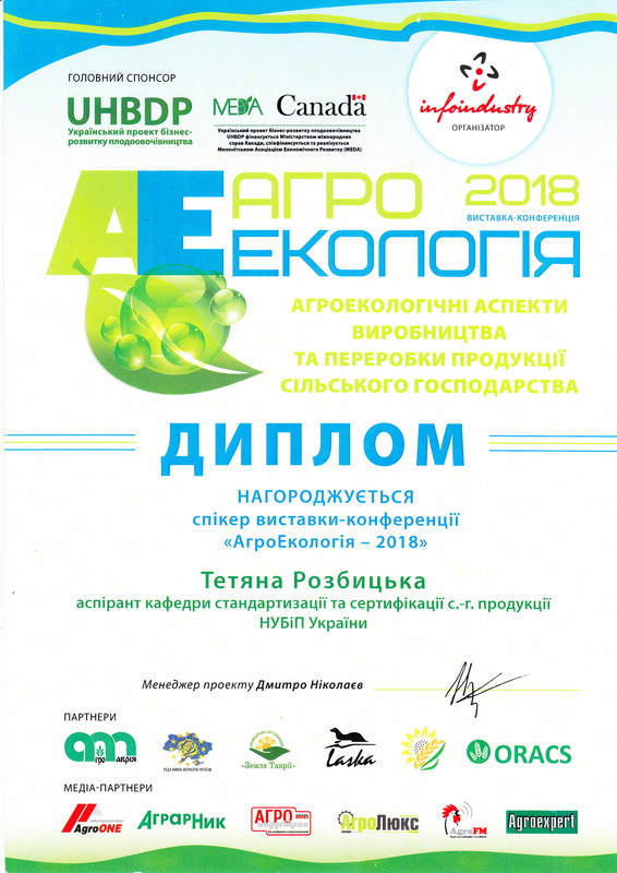 7-8 червня 2018 року відбулася Міжнародна науково-практична конференція на тему «Агроекологічні аспекти виробництва та переробки продукції сільського господарства» на яку спікерами були запрошені представники Національного університету біоресурсів і природокористування України, факультету харчових технологій та управління якістю продукції АПК, а саме д.т.н., проф. член-кор. НААН Любомир Хомічак, д.т.н., проф. Владислав Сухенко, к.т.н., доц., аудитор ISO 22000 Юлія Слива, к.т.н., доц. Наталя Мєдвєдєва, к.т.н., доц. Людмила Тищенко та аспірант Тетяна Розбицька.