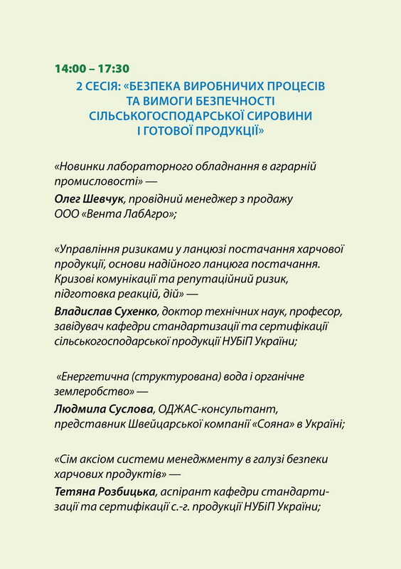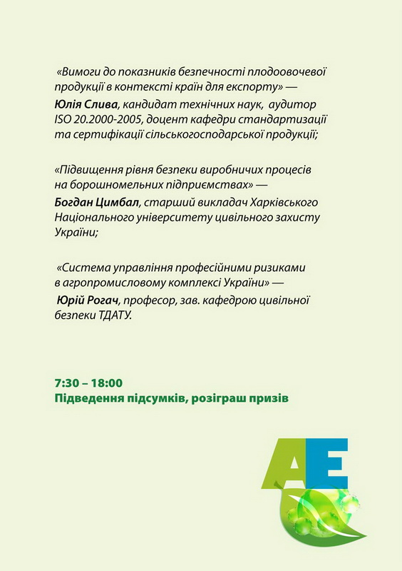Усі дні конференції «АгроЕкологія–2018» були сповнені жвавими науковими дискусіями та обговореннями. Загалом впродовж конференції було зроблено понад 20 доповідей у яких прийняли обговорення фахівці та фермери з різних областей України. У перший день конференції організатори підготували подарунки для учасників конференції, а на вечір дискус перейшов у святкову вечерю де учасники обмінювались думками, зав’язували нові корисні контакти. Кафедра стандартизації і там не втрачала можливостей і проводила профорієнтаційну роботу залучивши на заочне навчання двох абітурієнтів.