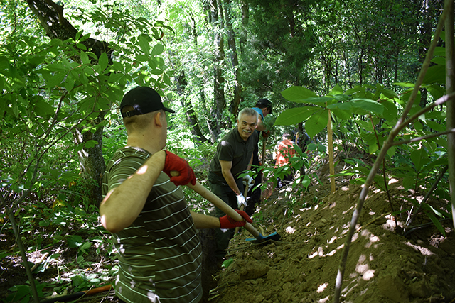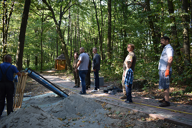На території Ботанічного саду протягом тривалого часу активно будується приміщення, в якому планується створення унікального в Україні просвітницького центру, покликаного інформувати та популяризувати лісівничу справу. Діяльність центру неможлива без використання сучасних технологій, які потребують якісного і безперебійного живлення, для підведення якого необхідно прокласти силовий кабель під шаром ґрунту. Саме завдання з підготовки траншеї для прокладання зазначеного кабелю отримали співробітники інституту, з яким працюючи як єдиний злагоджений колектив успішно і впоралися.